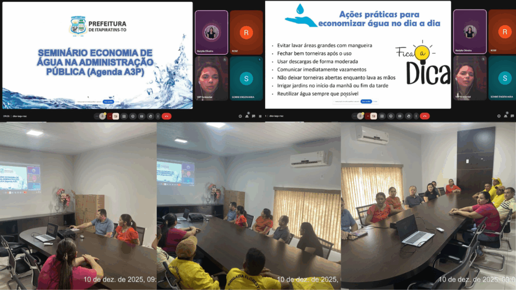 A Prefeitura Municipal de Itapiratins – TO, por meio da Secretaria Municipal de Agricultura, Turismo, Meio Ambiente e Desenvolvimento Sustentável, realizou no dia 10 de dezembro de 2025, às 09h, uma palestra educativa voltada aos servidores municipais, na sede da Prefeitura Municipal, como parte das ações da Agenda Ambiental na Administração Pública – A3P.
